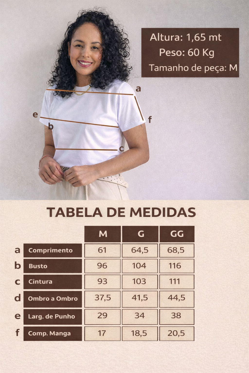 Nossas t-shirts básicas são confeccionadas em 100% algodão, com toque macio, excelente respirabilidade e caimento confortável — perfeitas para acompanhar a rotina com estilo e praticidade.